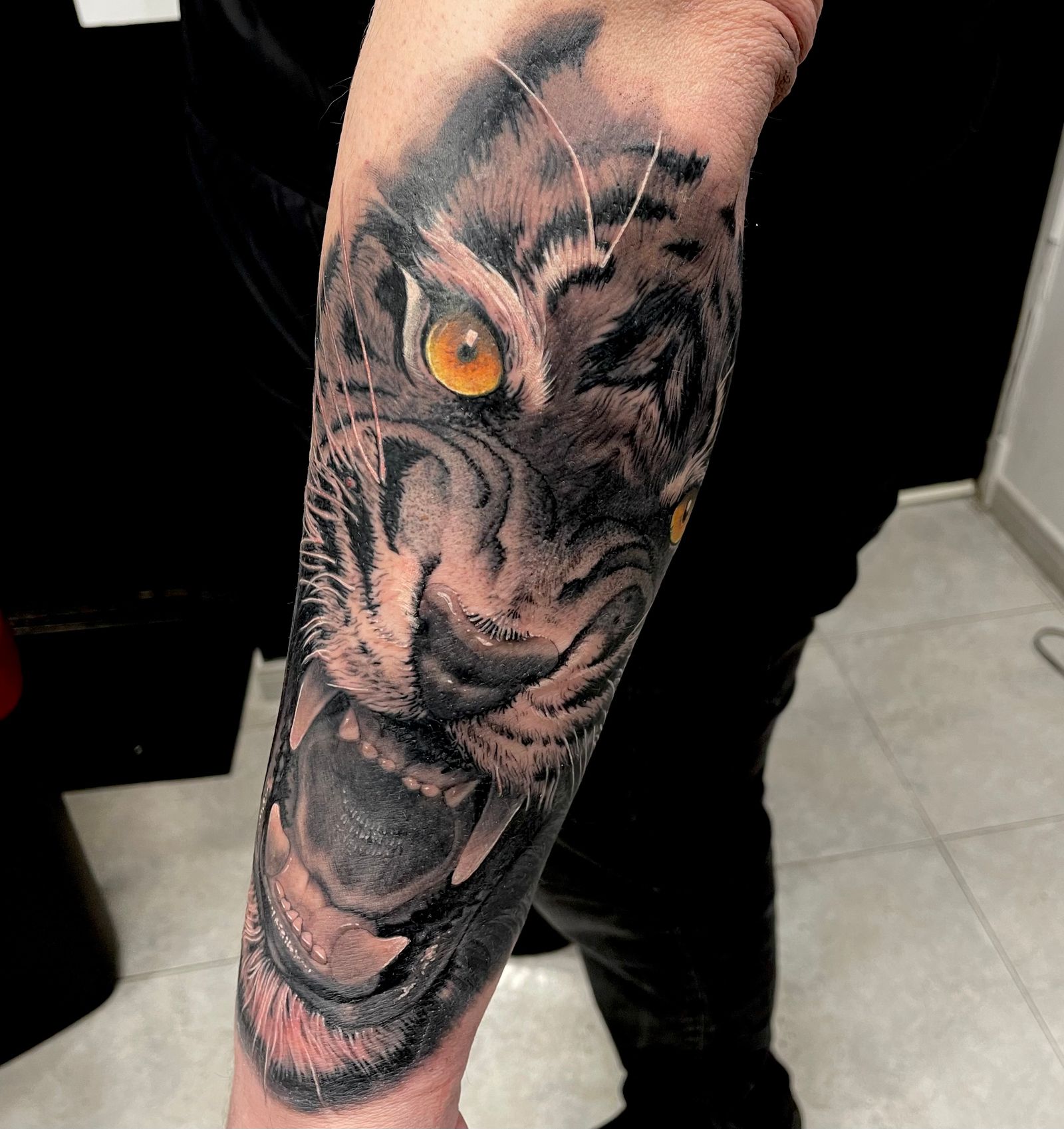 Retratos y diseños con gran nivel de detalle, sombras suaves y acabados precisos para tatuajes realistas de alto impacto visual.